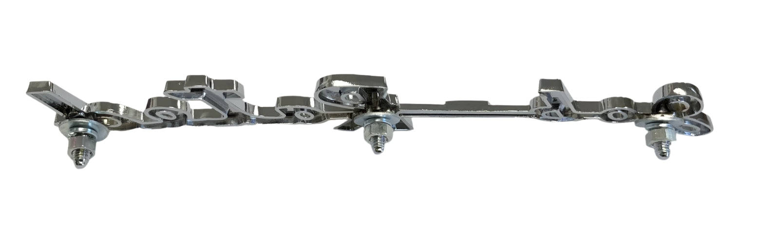 1954-1956 Dodge truck "Job Rated" fender script. It's a high-quality, chrome reproduction of the original part.